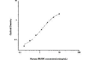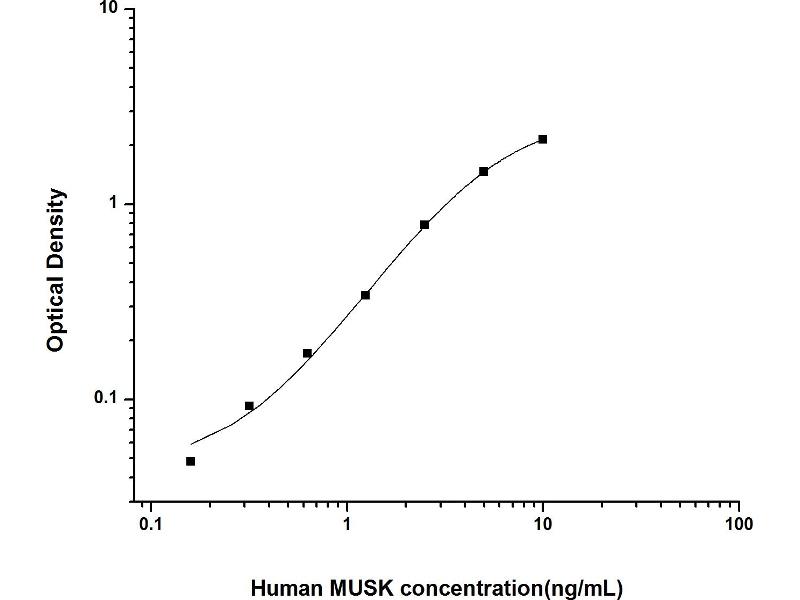 Intra-assay Precision (Precision within an assay): 3 samples with low, mid range and high level Human MUSK were tested 20 times on one plate, respectively. Inter-assay Precision (Precision between assays): 3 samples with low, mid range and high level Human MUSK were tested on 3 different plates, 20 replicates in each plate. Both intra-CV and inter-CV are < 10 %.
