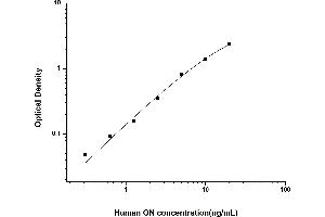 Intra-assay Precision (Precision within an assay): 3 samples with low, mid range and high level Human ON were tested 20 times on one plate, respectively. Inter-assay Precision (Precision between assays): 3 samples with low, mid range and high level Human ON were tested on 3 different plates, 20 replicates in each plate. Both intra-CV and inter-CV are < 10 %.