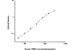 Intra-assay Precision (Precision within an assay): 3 samples with low, mid range and high level Human TNNI1 were tested 20 times on one plate, respectively. Inter-assay Precision (Precision between assays): 3 samples with low, mid range and high level Human TNNI1 were tested on 3 different plates, 20 replicates in each plate. Both intra-CV and inter-CV are < 10 %.