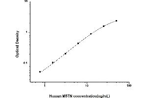 Intra-assay Precision (Precision within an assay): 3 samples with low, mid range and high level Human MSTN were tested 20 times on one plate, respectively.
