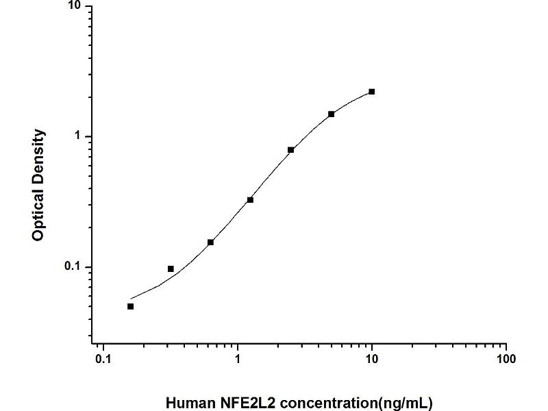 Intra-assay Precision (Precision within an assay): 3 samples with low, mid range and high level Human NFE2L2 were tested 20 times on one plate, respectively. Inter-assay Precision (Precision between assays): 3 samples with low, mid range and high level Human NFE2L2 were tested on 3 different plates, 20 replicates in each plate. Both intra-CV and inter-CV are < 10 %.
