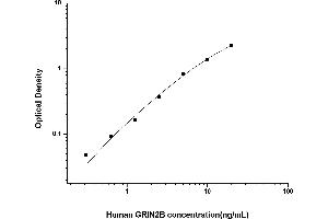 Intra-assay Precision (Precision within an assay): 3 samples with low, mid range and high level Human GRIN2B were tested 20 times on one plate, respectively. Inter-assay Precision (Precision between assays): 3 samples with low, mid range and high level Human GRIN2B were tested on 3 different plates, 20 replicates in each plate. Both intra-CV and inter-CV are < 10 %.