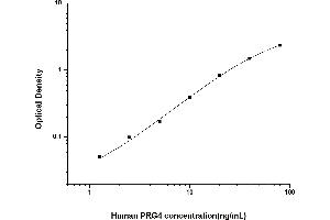 Intra-assay Precision (Precision within an assay): 3 samples with low, mid range and high level Human PRG4 were tested 20 times on one plate, respectively. Inter-assay Precision (Precision between assays): 3 samples with low, mid range and high level Human PRG4 were tested on 3 different plates, 20 replicates in each plate. Both intra-CV and inter-CV are < 10 %.