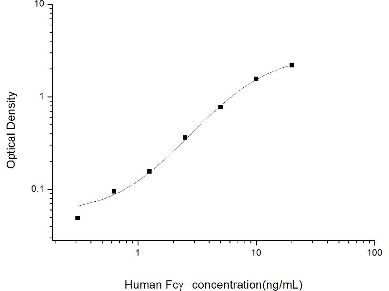Intra-assay Precision (Precision within an assay): 3 samples with low, mid range and high level Human Fcγ were tested 20 times on one plate, respectively. Inter-assay Precision (Precision between assays): 3 samples with low, mid range and high level Human Fcγ were tested on 3 different plates, 20 replicates in each plate. Both intra-CV and inter-CV are < 10 %.