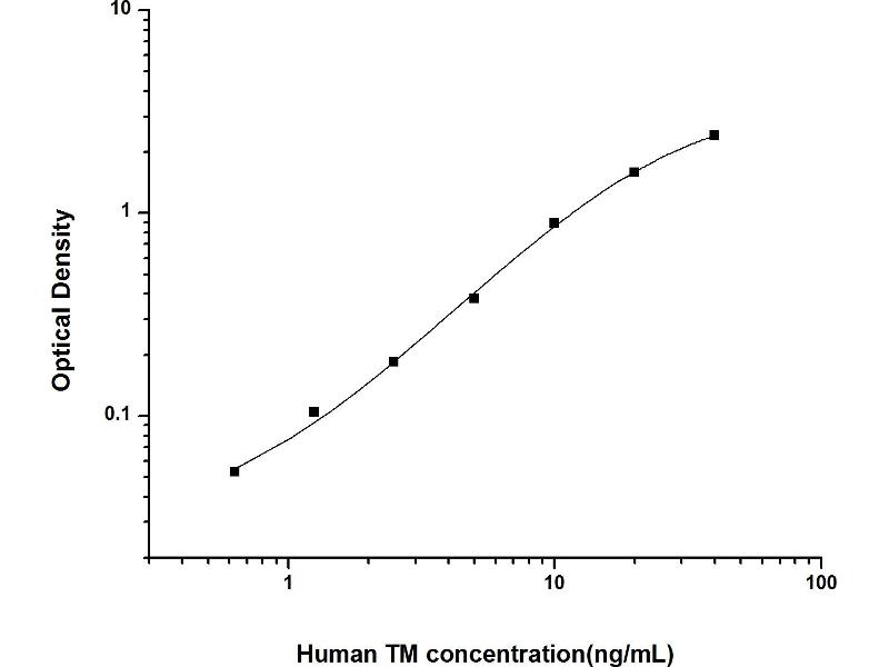 Intra-assay Precision (Precision within an assay): 3 samples with low, mid range and high level Human TM were tested 20 times on one plate, respectively. Inter-assay Precision (Precision between assays): 3 samples with low, mid range and high level Human TM were tested on 3 different plates, 20 replicates in each plate. Both intra-CV and inter-CV are < 10 %.