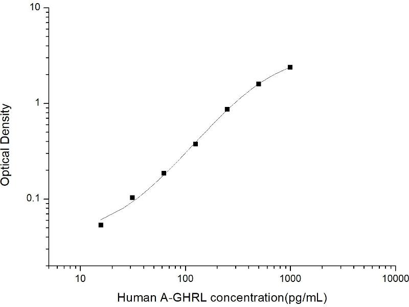 Intra-assay Precision (Precision within an assay): 3 samples with low, mid range and high level Human A-GHRL were tested 20 times on one plate, respectively. Inter-assay Precision (Precision between assays): 3 samples with low, mid range and high level Human A-GHRL were tested on 3 different plates, 20 replicates in each plate. Both intra-CV and inter-CV are < 10 %.