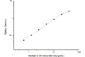 Intra-assay Precision (Precision within an assay): 3 samples with low, mid range and high level Human VDR were tested 20 times on one plate, respectively. Inter-assay Precision (Precision between assays): 3 samples with low, mid range and high level Human VDR were tested on 3 different plates, 20 replicates in each plate. Both intra-CV and inter-CV are < 10 %.