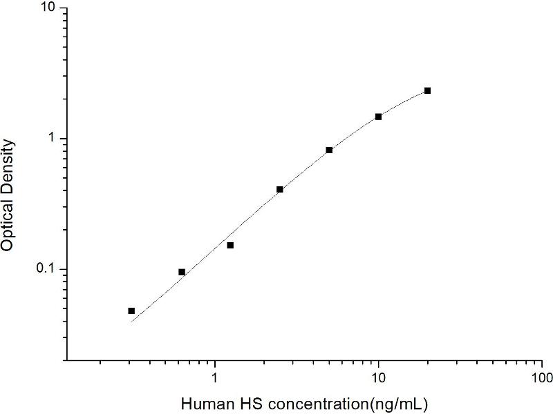 Intra-assay Precision (Precision within an assay): 3 samples with low, mid range and high level Human HS were tested 20 times on one plate, respectively. Inter-assay Precision (Precision between assays): 3 samples with low, mid range and high level Human HS were tested on 3 different plates, 20 replicates in each plate. Both intra-CV and inter-CV are < 10 %.