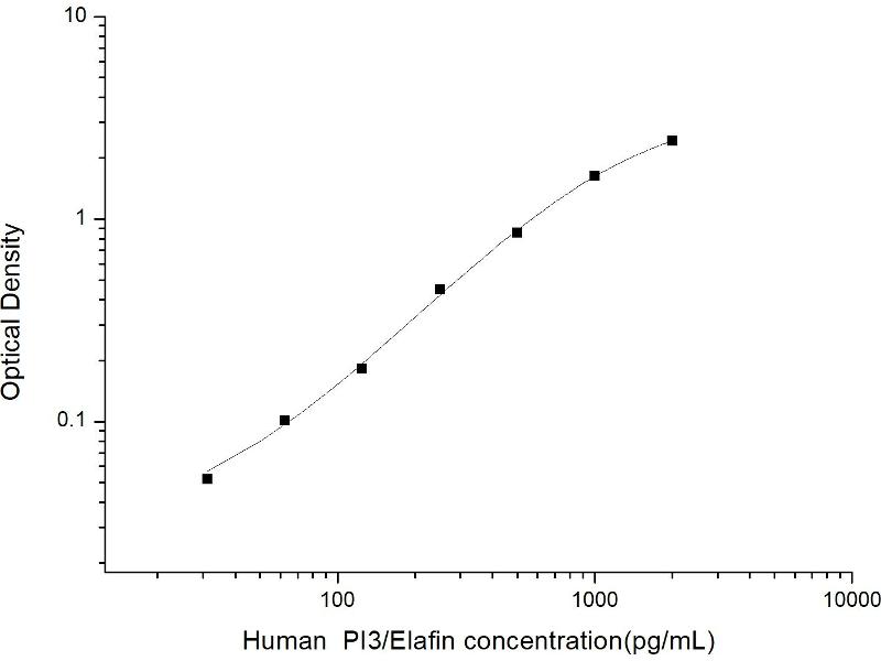 Intra-assay Precision (Precision within an assay): 3 samples with low, mid range and high level Human PI3/Elafin were tested 20 times on one plate, respectively. Inter-assay Precision (Precision between assays): 3 samples with low, mid range and high level Human PI3/Elafin were tested on 3 different plates, 20 replicates in each plate. Both intra-CV and inter-CV are < 10 %.
