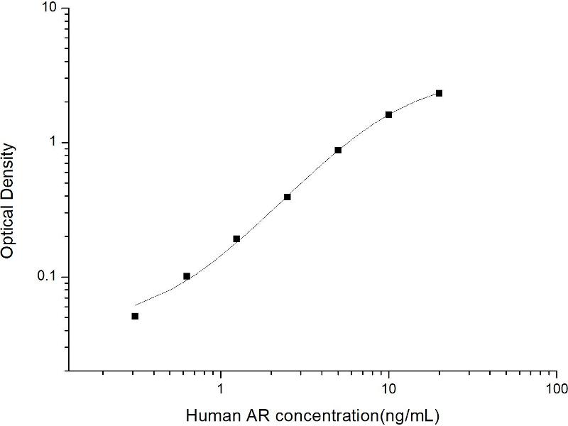 Intra-assay Precision (Precision within an assay): 3 samples with low, mid range and high level Human AR were tested 20 times on one plate, respectively. Inter-assay Precision (Precision between assays): 3 samples with low, mid range and high level Human AR were tested on 3 different plates, 20 replicates in each plate. Both intra-CV and inter-CV are < 10 %.