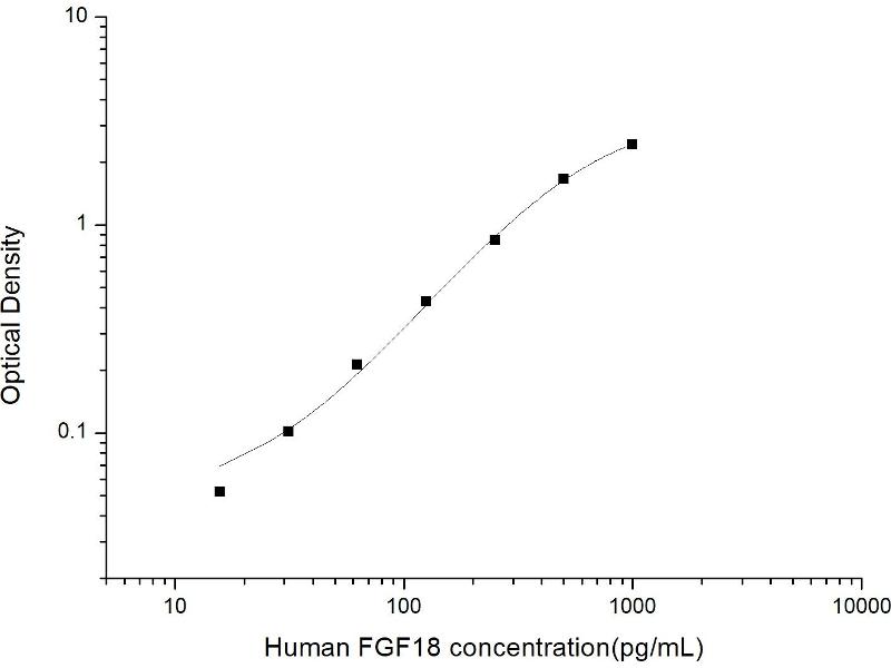 Intra-assay Precision (Precision within an assay): 3 samples with low, mid range and high level Human FGF18 were tested 20 times on one plate, respectively. Inter-assay Precision (Precision between assays): 3 samples with low, mid range and high level Human FGF18 were tested on 3 different plates, 20 replicates in each plate. Both intra-CV and inter-CV are < 10 %.