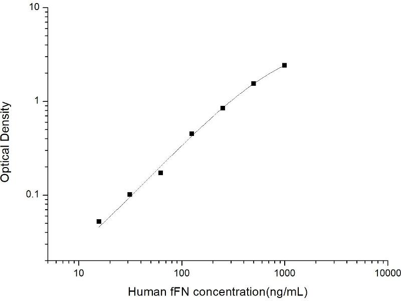 Intra-assay Precision (Precision within an assay): 3 samples with low, mid range and high level Human fFN were tested 20 times on one plate, respectively. Inter-assay Precision (Precision between assays): 3 samples with low, mid range and high level Human fFN were tested on 3 different plates, 20 replicates in each plate. Both intra-CV and inter-CV are < 10 %.