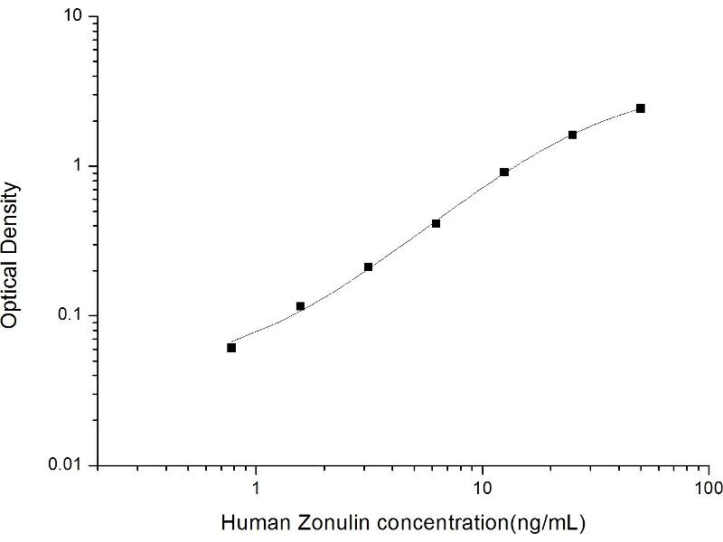 Intra-assay Precision (Precision within an assay): 3 samples with low, mid range and high level Human Zonulin were tested 20 times on one plate, respectively. Inter-assay Precision (Precision between assays): 3 samples with low, mid range and high level Human Zonulin were tested on 3 different plates, 20 replicates in each plate. Both intra-CV and inter-CV are < 10 %.
