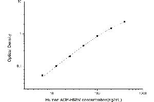 Intra-assay Precision (Precision within an assay): 3 samples with low, mid range and high level Human ADP-HMW were tested 20 times on one plate, respectively. Inter-assay Precision (Precision between assays): 3 samples with low, mid range and high level Human ADP-HMW were tested on 3 different plates, 20 replicates in each plate. Both intra-CV and inter-CV are < 10 %.