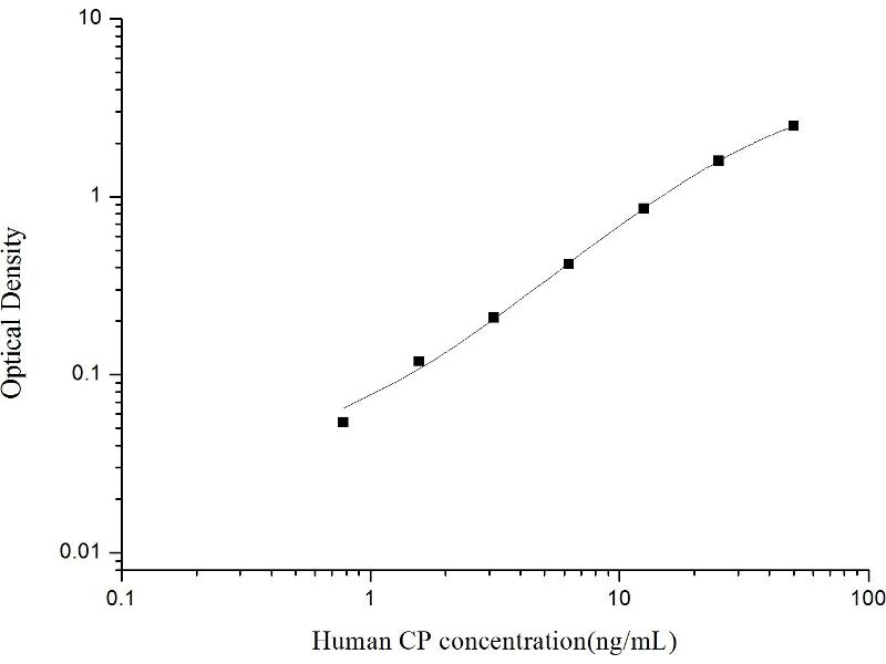 Intra-assay Precision (Precision within an assay): 3 samples with low, mid range and high level Human CP were tested 20 times on one plate, respectively. Inter-assay Precision (Precision between assays): 3 samples with low, mid range and high level Human CP were tested on 3 different plates, 20 replicates in each plate. Both intra-CV and inter-CV are < 10 %.