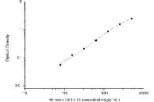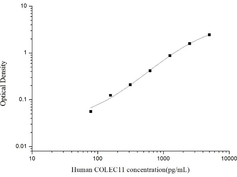 Intra-assay Precision (Precision within an assay): 3 samples with low, mid range and high level Human COLEC11 were tested 20 times on one plate, respectively. Inter-assay Precision (Precision between assays): 3 samples with low, mid range and high level Human COLEC11 were tested on 3 different plates, 20 replicates in each plate. Both intra-CV and inter-CV are < 10 %.