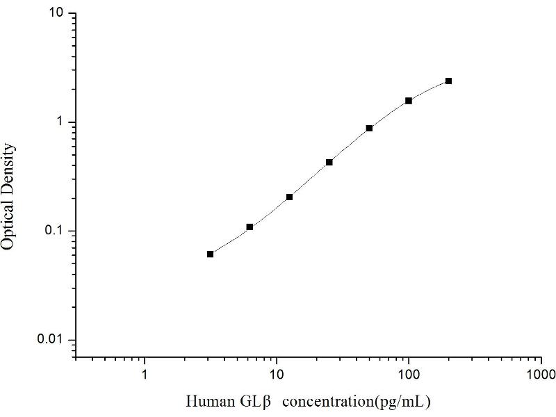 Intra-assay Precision (Precision within an assay): 3 samples with low, mid range and high level Human GLβ were tested 20 times on one plate, respectively. Inter-assay Precision (Precision between assays): 3 samples with low, mid range and high level Human GLβ were tested on 3 different plates, 20 replicates in each plate. Both intra-CV and inter-CV are < 10 %.
