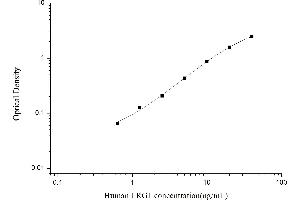Standard working solution: Centrifuge the standard at 10,000xg for 1 min. Add 1.0 mL of Reference Standard &Sample Diluent, let it stand for 10 min and invert it gently several times. After it dissolves fully, mix it thoroughly with a pipette. This reconstitution produces a working solution of 40 ng/mL(or add 1.0 mL of Reference Standard &Sample Diluent, let it stand for 1-2 min and then mix it thoroughly with a vortex meter of low speed. Bubbles generated during vortex could be removed by centrifuging at a relatively low speed). Then make serial dilutions as needed. The recommended dilution gradient is as follows: 40, 20, 10, 5, 2.5, 1.25, 0.63, 0 ng/mL. Dilution method: Take 7 EP tubes, add 500μL of Reference Standard & Sample Diluent to each tube. Pipette 500μL of the 40 ng/mL working solution to the first tube and mix up to produce a 20 ng/mL working solution. Pipette 500μL of the solution from the former tube into the latter one according to this step. The illustration below is for reference. Note: the last tube is regarded as a blank. Don't pipette solution into it from the former tube.