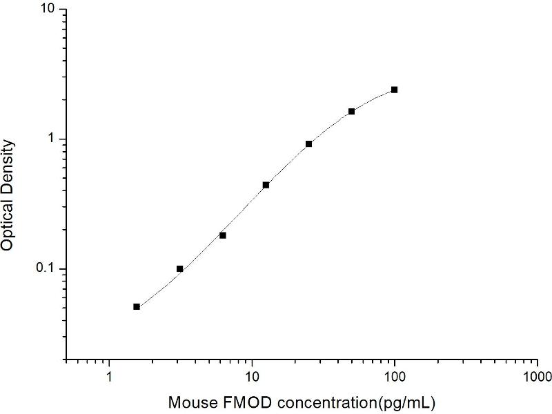 Intra-assay Precision (Precision within an assay): 3 samples with low, mid range and high level Mouse FMOD were tested 20 times on one plate, respectively. Inter-assay Precision (Precision between assays): 3 samples with low, mid range and high level Mouse FMOD were tested on 3 different plates, 20 replicates in each plate. Both intra-CV and inter-CV are < 10 %.