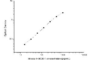 Intra-assay Precision (Precision within an assay): 3 samples with low, mid range and high level Mouse HMGB-1 were tested 20 times on one plate, respectively. Inter-assay Precision (Precision between assays): 3 samples with low, mid range and high level Mouse HMGB-1 were tested on 3 different plates, 20 replicates in each plate. Both intra-CV and inter-CV are < 10 %.