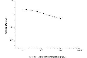 Intra-assay Precision (Precision within an assay): 3 samples with low, mid range and high level Mouse TXB2 were tested 20 times on one plate, respectively. Inter-assay Precision (Precision between assays): 3 samples with low, mid range and high level Mouse TXB2 were tested on 3 different plates, 20 replicates in each plate. Both intra-CV and inter-CV are < 10 %.
