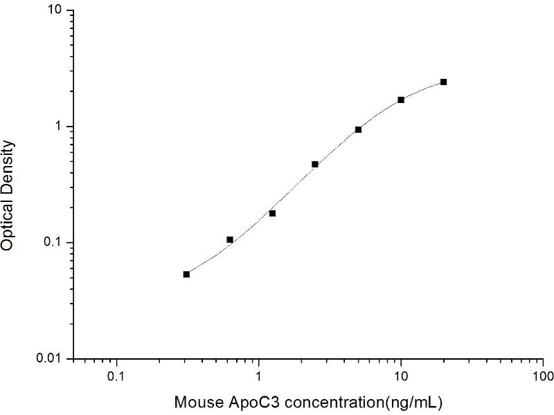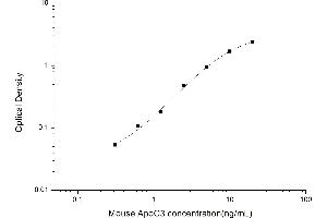 Intra-assay Precision (Precision within an assay): 3 samples with low, mid range and high level Mouse ApoC3 were tested 20 times on one plate, respectively. Inter-assay Precision (Precision between assays): 3 samples with low, mid range and high level Mouse ApoC3 were tested on 3 different plates, 20 replicates in each plate. Both intra-CV and inter-CV are < 10 %.