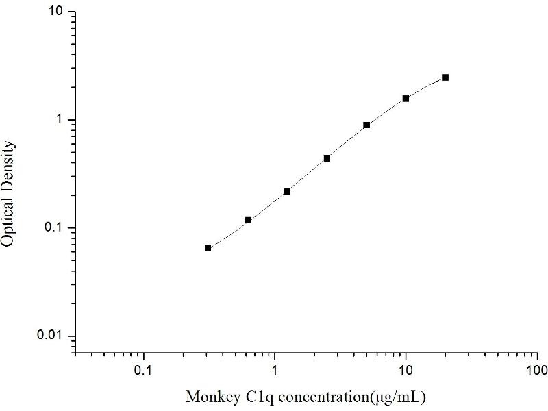 Intra-assay Precision (Precision within an assay): 3 samples with low, mid range and high level Monkey C1q were tested 20 times on one plate, respectively. Inter-assay Precision (Precision between assays): 3 samples with low, mid range and high level Monkey C1q were tested on 3 different plates, 20 replicates in each plate. Both intra-CV and inter-CV are < 10 %.
