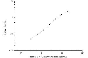 Intra-assay Precision (Precision within an assay): 3 samples with low, mid range and high level Rat MMP-13 were tested 20 times on one plate, respectively. Inter-assay Precision (Precision between assays): 3 samples with low, mid range and high level Rat MMP-13 were tested on 3 different plates, 20 replicates in each plate. Both intra-CV and inter-CV are < 10 %.