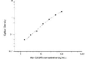 Intra-assay Precision (Precision within an assay): 3 samples with low, mid range and high level Rat CASP9 were tested 20 times on one plate, respectively. Inter-assay Precision (Precision between assays): 3 samples with low, mid range and high level Rat CASP9 were tested on 3 different plates, 20 replicates in each plate. Both intra-CV and inter-CV are < 10 %.