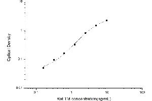 Intra-assay Precision (Precision within an assay): 3 samples with low, mid range and high level Rat TM were tested 20 times on one plate, respectively. Inter-assay Precision (Precision between assays): 3 samples with low, mid range and high level Rat TM were tested on 3 different plates, 20 replicates in each plate. Both intra-CV and inter-CV are < 10 %.