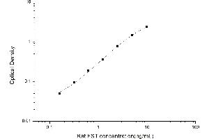 Intra-assay Precision (Precision within an assay): 3 samples with low, mid range and high level Rat FST were tested 20 times on one plate, respectively. Inter-assay Precision (Precision between assays): 3 samples with low, mid range and high level Rat FST were tested on 3 different plates, 20 replicates in each plate. Both intra-CV and inter-CV are < 10 %.