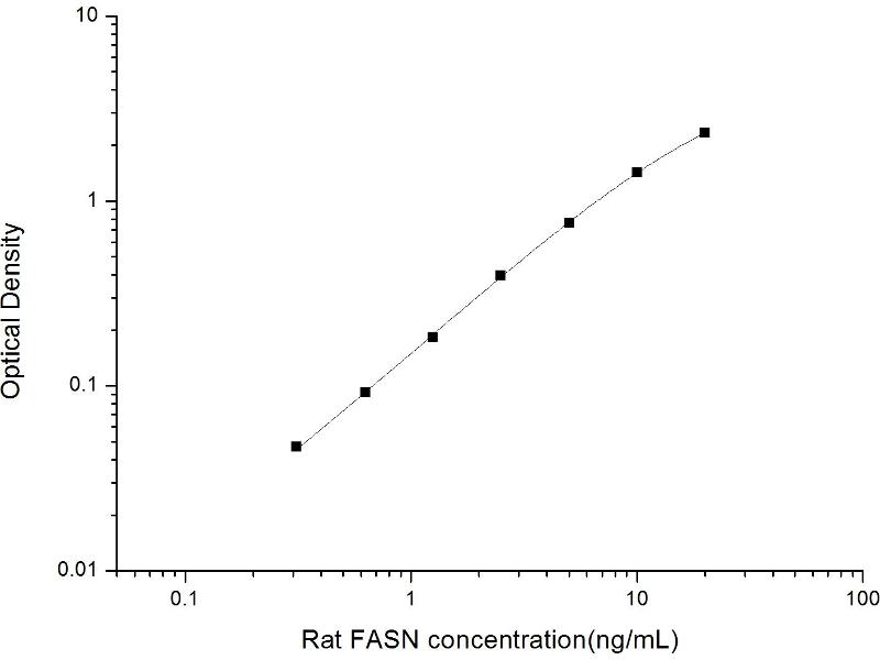 Intra-assay Precision (Precision within an assay): 3 samples with low, mid range and high level Rat FASN were tested 20 times on one plate, respectively. Inter-assay Precision (Precision between assays): 3 samples with low, mid range and high level Rat FASN were tested on 3 different plates, 20 replicates in each plate. Both intra-CV and inter-CV are < 10 %.