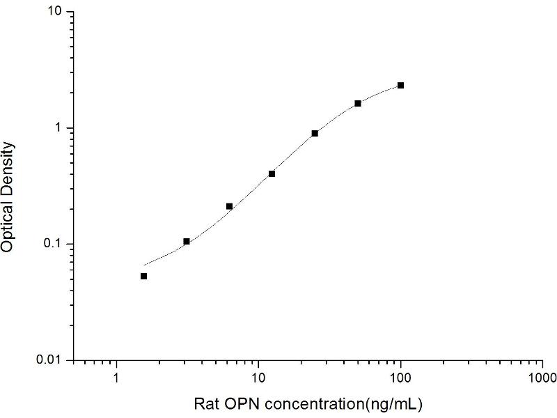 Intra-assay Precision (Precision within an assay): 3 samples with low, mid range and high level Rat OPN were tested 20 times on one plate, respectively. Inter-assay Precision (Precision between assays): 3 samples with low, mid range and high level Rat OPN were tested on 3 different plates, 20 replicates in each plate. Both intra-CV and inter-CV are < 10 %.