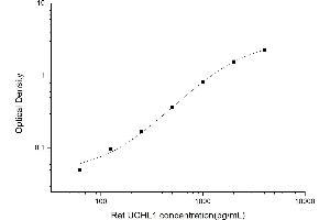 Intra-assay Precision (Precision within an assay): 3 samples with low, mid range and high level Rat UCHL1 were tested 20 times on one plate, respectively. Inter-assay Precision (Precision between assays): 3 samples with low, mid range and high level Rat UCHL1 were tested on 3 different plates, 20 replicates in each plate. Both intra-CV and inter-CV are < 10 %.