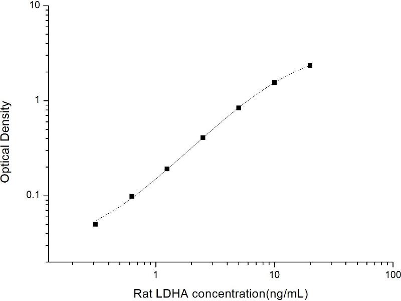 Intra-assay Precision (Precision within an assay): 3 samples with low, mid range and high level Rat LDHA were tested 20 times on one plate, respectively. Inter-assay Precision (Precision between assays): 3 samples with low, mid range and high level Rat LDHA were tested on 3 different plates, 20 replicates in each plate. Both intra-CV and inter-CV are < 10 %.