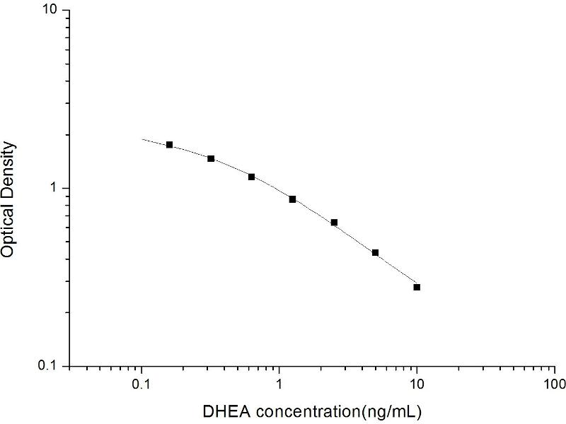 Intra-assay Precision (Precision within an assay): 3 samples with low, mid range and high level DHEA were tested 20 times on one plate, respectively. Inter-assay Precision (Precision between assays): 3 samples with low, mid range and high level DHEA were tested on 3 different plates, 20 replicates in each plate. Both intra-CV and inter-CV are < 10 %.