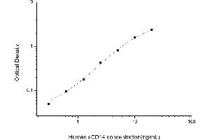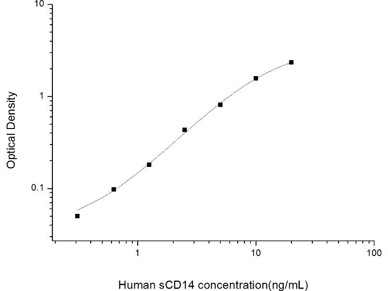 Intra-assay Precision (Precision within an assay): 3 samples with low, mid range and high level Human sCD14 were tested 20 times on one plate, respectively.