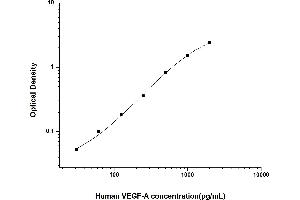 Intra-assay Precision (Precision within an assay): 3 samples with low, mid range and high level Human VEGF-A were tested 20 times on one plate, respectively. Inter-assay Precision (Precision between assays): 3 samples with low, mid range and high level Human VEGF-A were tested on 3 different plates, 20 replicates in each plate. Both intra-CV and inter-CV are < 10 %.