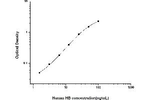Intra-assay Precision (Precision within an assay): 3 samples with low, mid range and high level Human HB were tested 20 times on one plate, respectively.