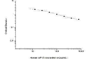 Intra-assay Precision (Precision within an assay): 3 samples with low, mid range and high level Human AP13 were tested 20 times on one plate, respectively. Inter-assay Precision (Precision between assays): 3 samples with low, mid range and high level Human AP13 were tested on 3 different plates, 20 replicates in each plate. Both intra-CV and inter-CV are < 10 %.