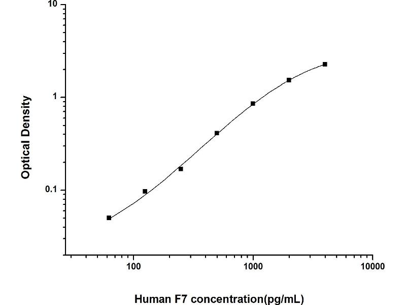 Intra-assay Precision (Precision within an assay): 3 samples with low, mid range and high level Human F7 were tested 20 times on one plate, respectively. Inter-assay Precision (Precision between assays): 3 samples with low, mid range and high level Human F7 were tested on 3 different plates, 20 replicates in each plate. Both intra-CV and inter-CV are < 10 %.