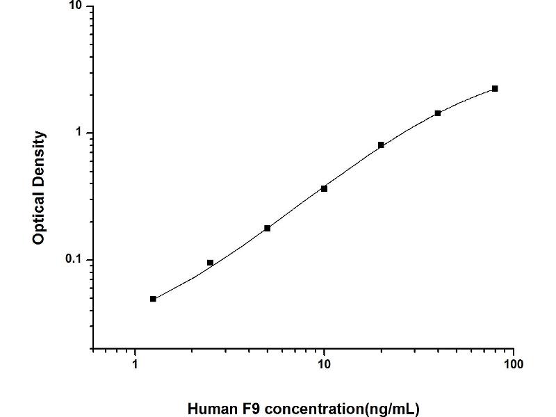 Intra-assay Precision (Precision within an assay): 3 samples with low, mid range and high level Human F9 were tested 20 times on one plate, respectively. Inter-assay Precision (Precision between assays): 3 samples with low, mid range and high level Human F9 were tested on 3 different plates, 20 replicates in each plate. Both intra-CV and inter-CV are < 10 %.