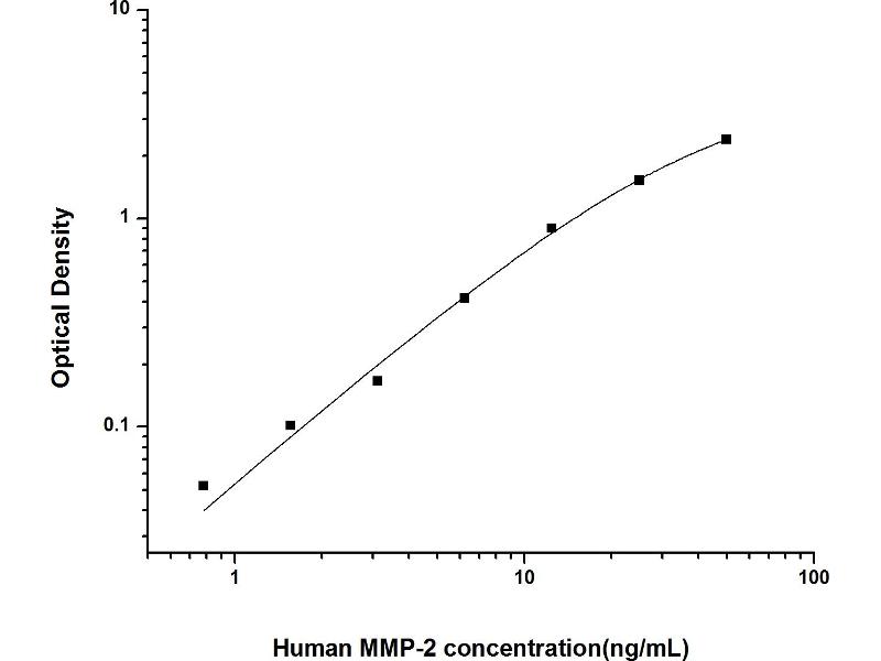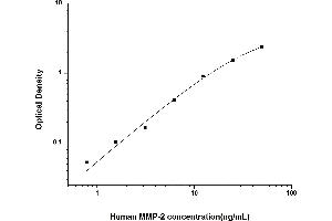 Intra-assay Precision (Precision within an assay): 3 samples with low, mid range and high level Human MMP-2 were tested 20 times on one plate, respectively. Inter-assay Precision (Precision between assays): 3 samples with low, mid range and high level Human MMP-2 were tested on 3 different plates, 20 replicates in each plate. Both intra-CV and inter-CV are < 10 %.
