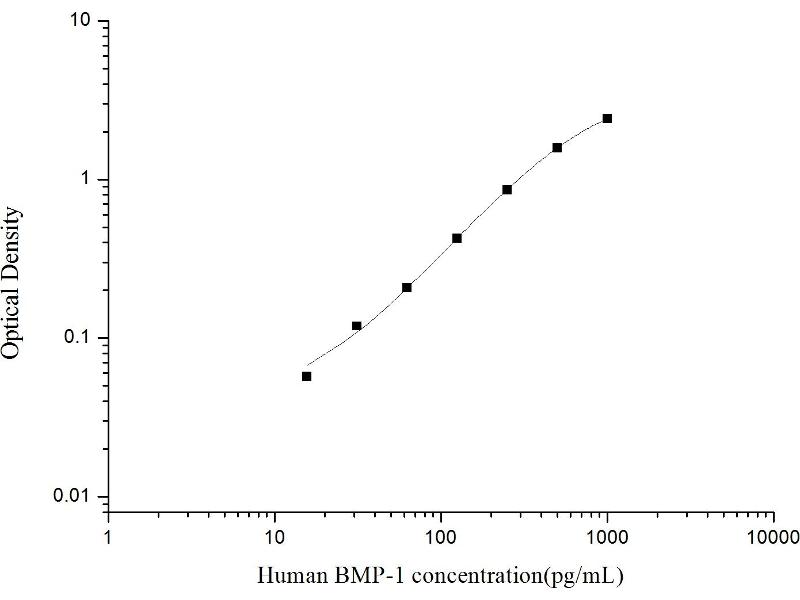 Intra-assay Precision (Precision within an assay): 3 samples with low, mid range and high level Human BMP-1 were tested 20 times on one plate, respectively. Inter-assay Precision (Precision between assays): 3 samples with low, mid range and high level Human BMP-1 were tested on 3 different plates, 20 replicates in each plate. Both intra-CV and inter-CV are < 10 %.