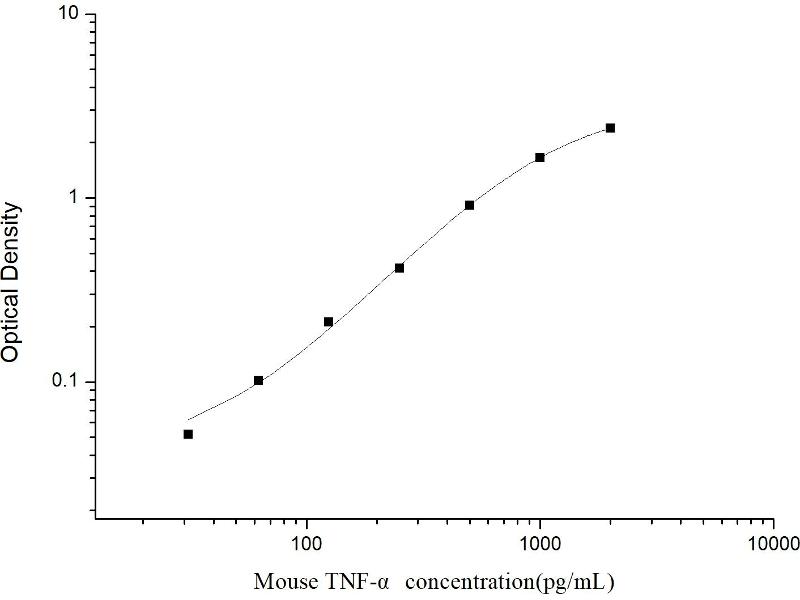 Intra-assay Precision (Precision within an assay): 3 samples with low, mid range and high level Mouse TNF-α were tested 20 times on one plate, respectively. Inter-assay Precision (Precision between assays): 3 samples with low, mid range and high level Mouse TNF-α were tested on 3 different plates, 20 replicates in each plate. Both intra-CV and inter-CV are < 10 %.