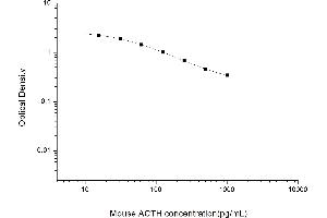 Intra-assay Precision (Precision within an assay): 3 samples with low, mid range and high level Mouse ACTH were tested 20 times on one plate, respectively. Inter-assay Precision (Precision between assays): 3 samples with low, mid range and high level Mouse ACTH were tested on 3 different plates, 20 replicates in each plate. Both intra-CV and inter-CV are < 10 %.