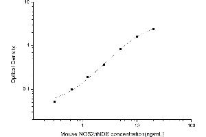 Intra-assay Precision (Precision within an assay): 3 samples with low, mid range and high level Mouse NOS2/iNOS were tested 20 times on one plate, respectively. Inter-assay Precision (Precision between assays): 3 samples with low, mid range and high level Mouse NOS2/iNOS were tested on 3 different plates, 20 replicates in each plate. Both intra-CV and inter-CV are < 10 %.