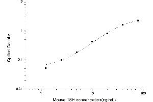 Intra-assay Precision (Precision within an assay): 3 samples with low, mid range and high level Mouse TSH were tested 20 times on one plate, respectively. Inter-assay Precision (Precision between assays): 3 samples with low, mid range and high level Mouse TSH were tested on 3 different plates, 20 replicates in each plate. Both intra-CV and inter-CV are < 10 %.