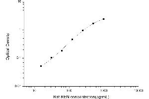 Inter-assay Precision (Precision between assays): 3 samples with low, mid range and high level Rat REN were tested on 3 different plates, 20 replicates in each plate.