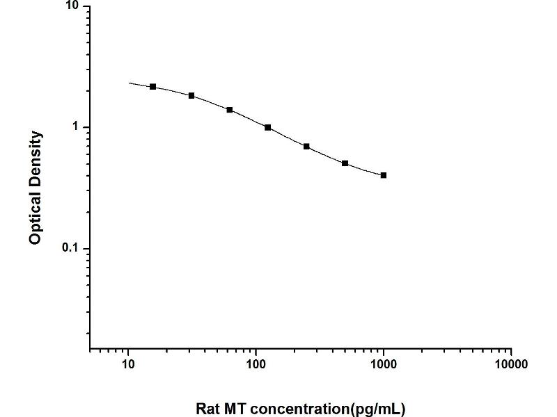 Intra-assay Precision (Precision within an assay): 3 samples with low, mid range and high level Rat MT were tested 20 times on one plate, respectively. Inter-assay Precision (Precision between assays): 3 samples with low, mid range and high level Rat MT were tested on 3 different plates, 20 replicates in each plate. Both intra-CV and inter-CV are < 10 %.